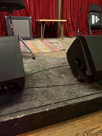 Hugo's Stage -- was really build for bands and drum kits. It is not really ideal for dance. For Sneak Peaks performances, the stage will be cleared of equipment but will still have a combination of carpet and wooden deck. BE CAREFUL and BE AWARE of the stage's limitations before you perform. Take the time to learn the environment and WALK THE STAGE IN ADVANCE